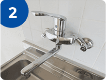 壁に取り付けられている給水・給湯管の間隔が確認できるように撮影してください。 -